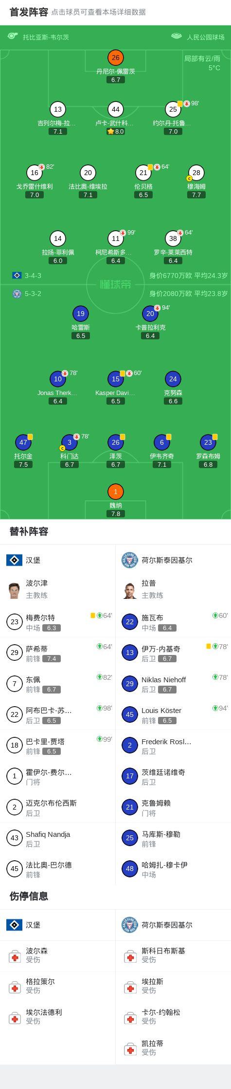 北京时间12月4日德国足协杯 第三轮,汉堡对阵荷尔斯泰因基尔。最终比分汉堡 0-0 基尔。